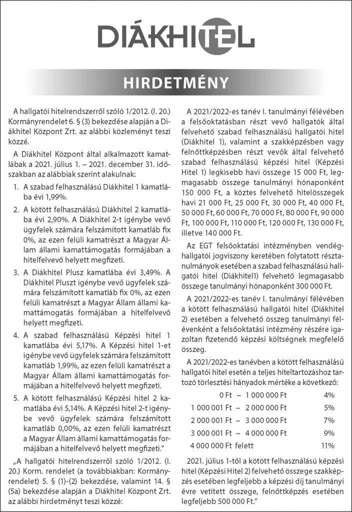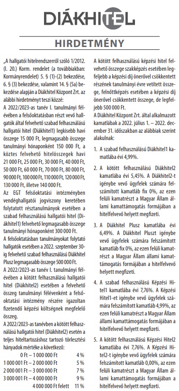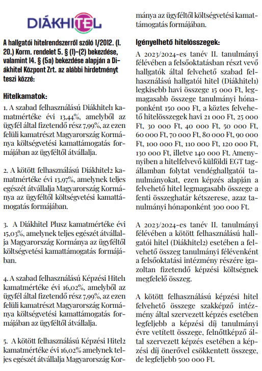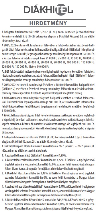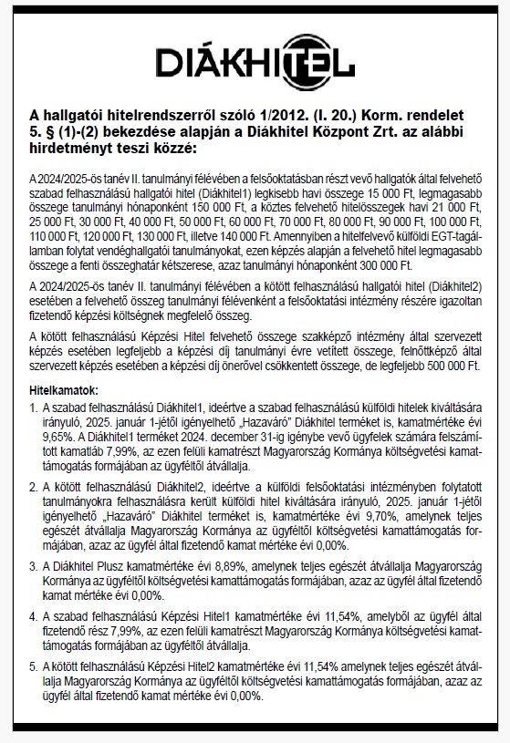 A Diákhitel Központ Zrt. közadatok újrahasznosítása körébe tartozó adatot nem kezel.